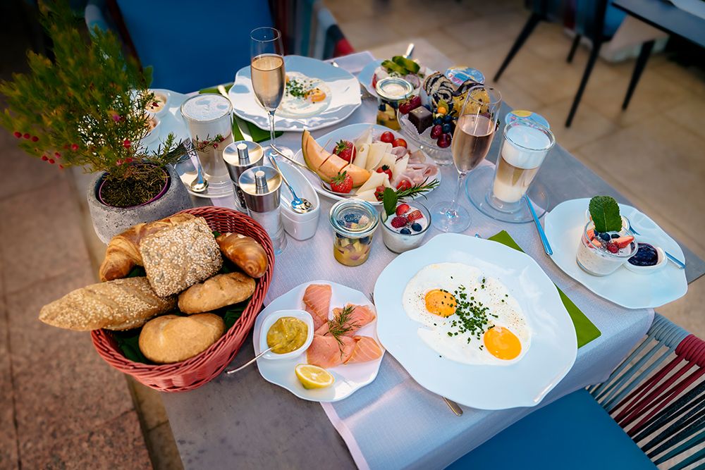 - Reichhaltiges Frühstücksbuffet mit einer Bio-Ecke (bei schönem Wetter auf der Panoramaterrasse)