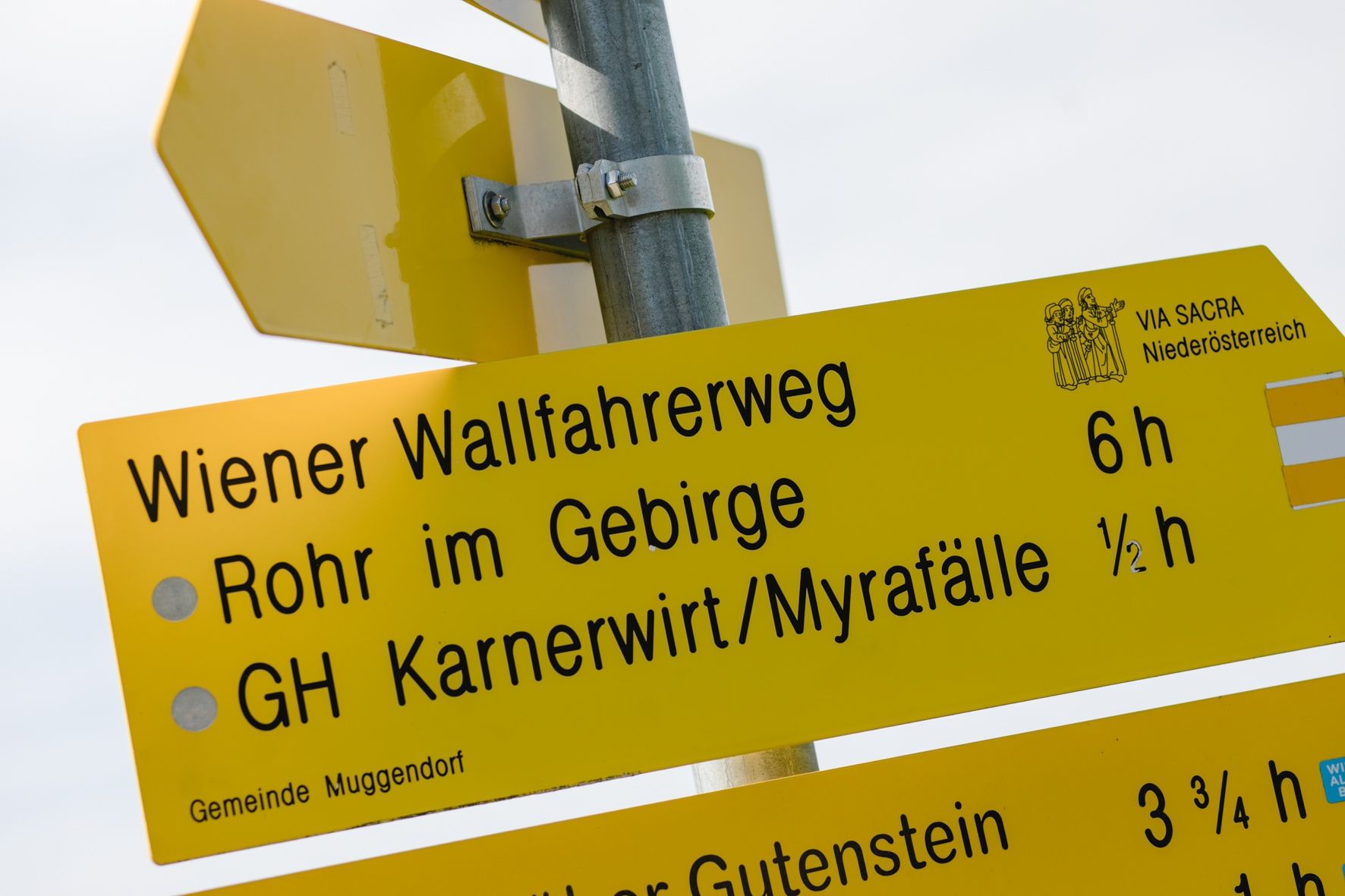In order to offer Mariazell pilgrims an alternative to the Via Sacra, the Viennese pilgrimage route marked No. 06 was created in 1975 by the long-distance hikers' organization of the Alpine Club. This runs close to the Via Sacra as far as Kaumberg. It then uses marked tourist paths and side roads via Unterberg - Rohr im Gebirge - St. Aegyd am Neuwald, away from the historic pilgrimage route. There are alternative routes between Maria Raisenmarkt and the Unterberg via Weissenbach, Furth and Muggendorf. These routes touch on scenic highlights and avoid the strenuous ascent between Araburg and Kieneck. The Lower Austrian Pilgrims' Trail connects the Via Sacra Pilgrims' Trail with the Vienna Pilgrims' Trail between Türnitz and the Walster.