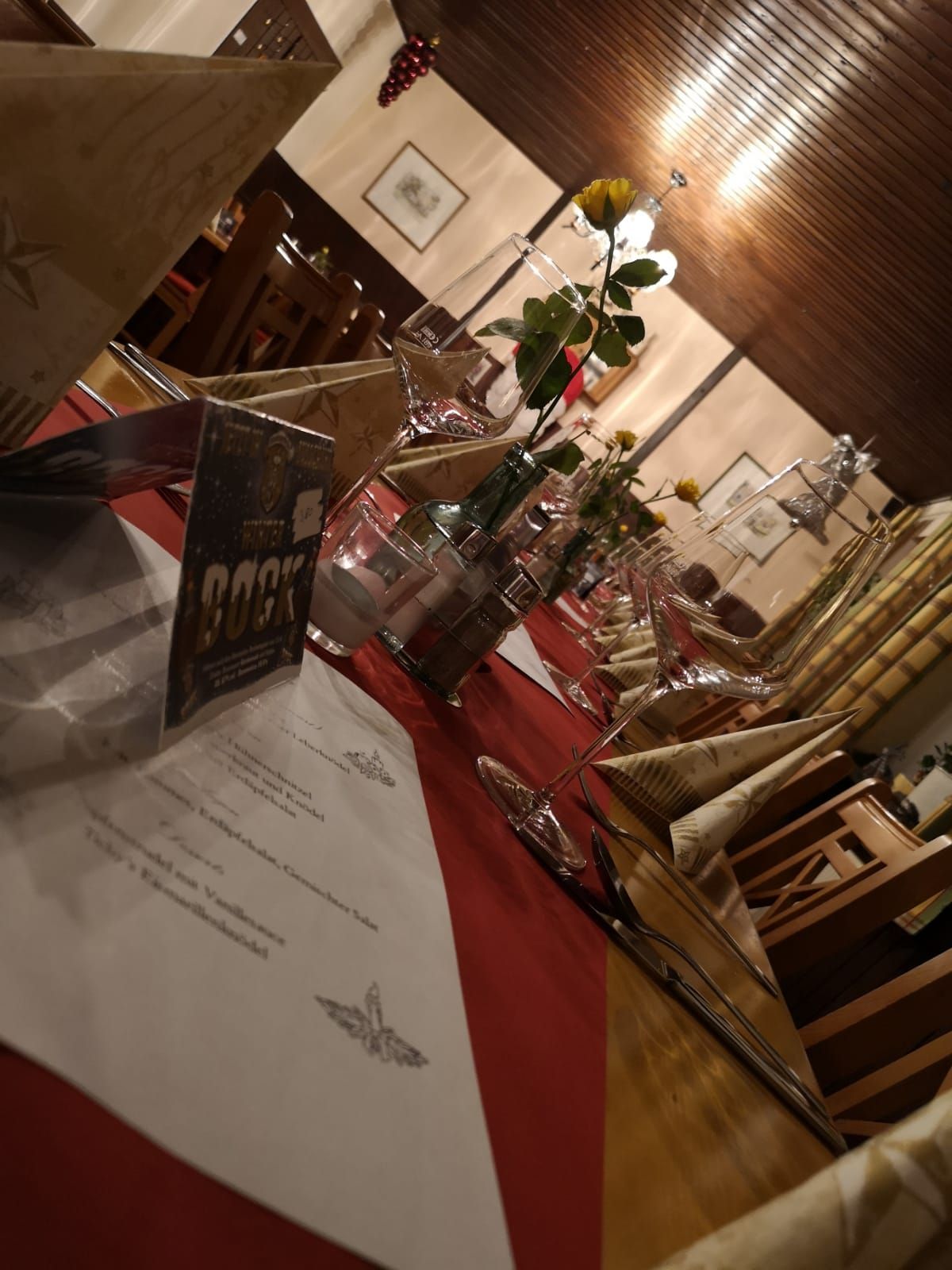 Wir bieten neben einer umfangreichen Speisekarte und ausgesuchten Weinen ständig wechselnde saisonale Gerichte an.