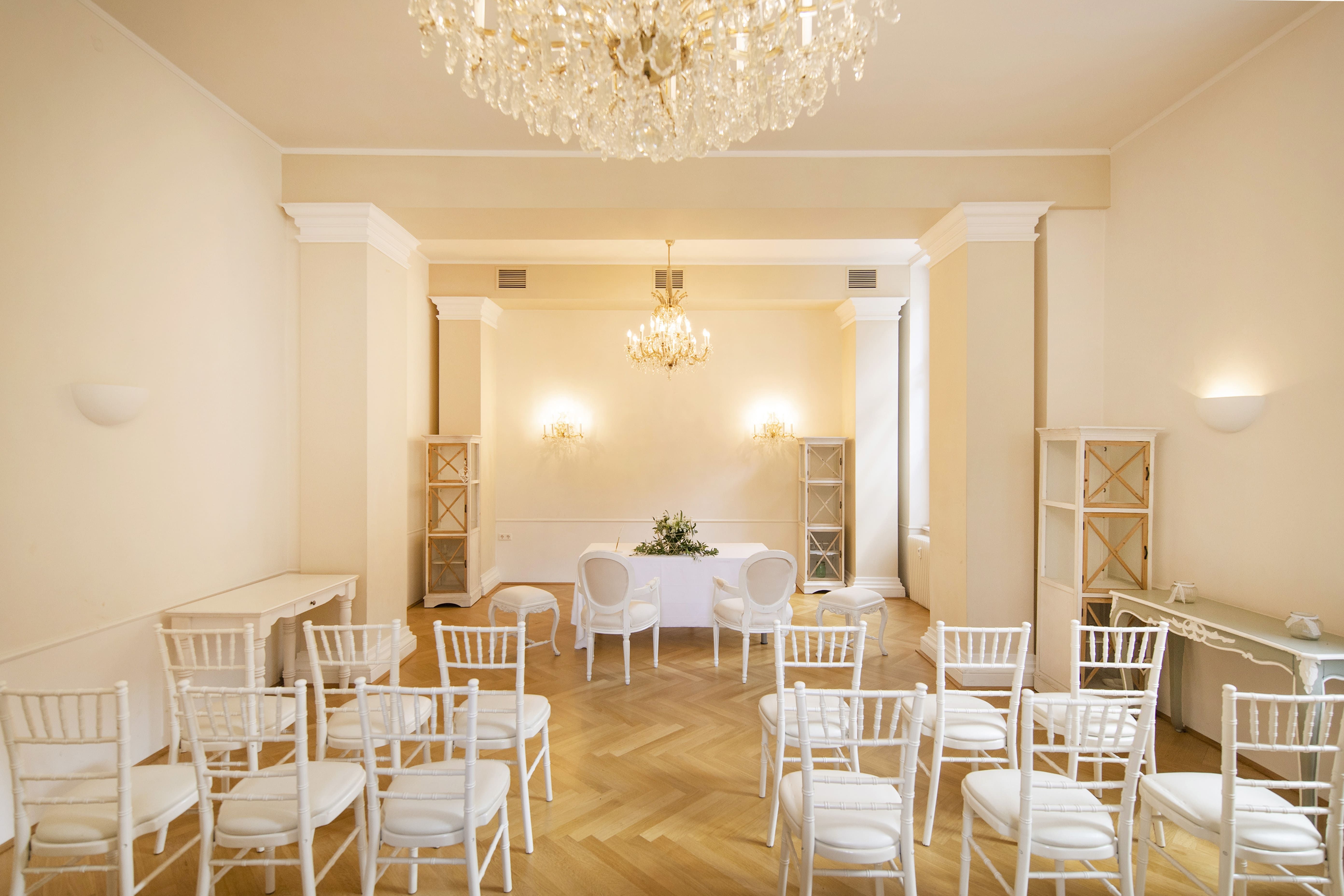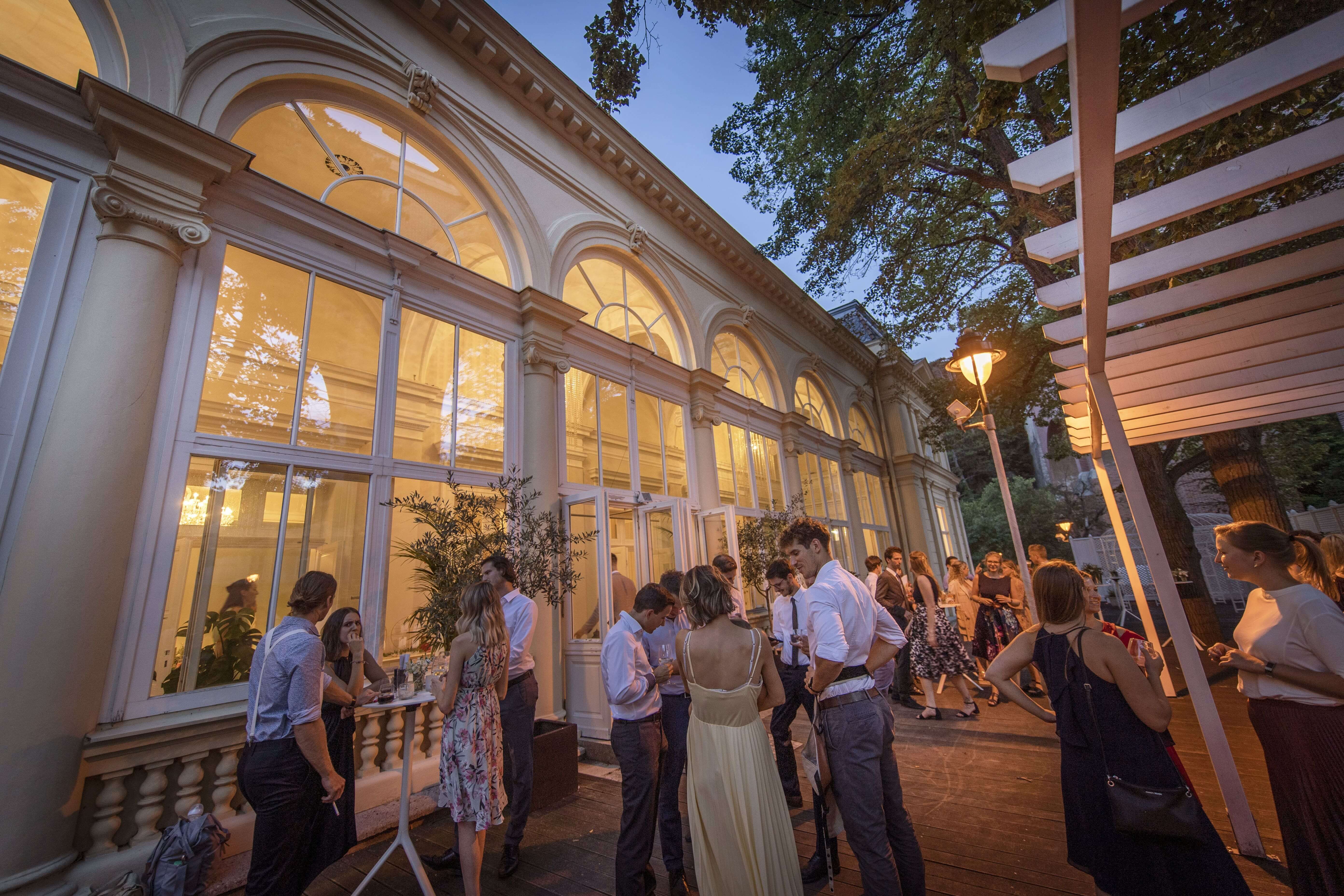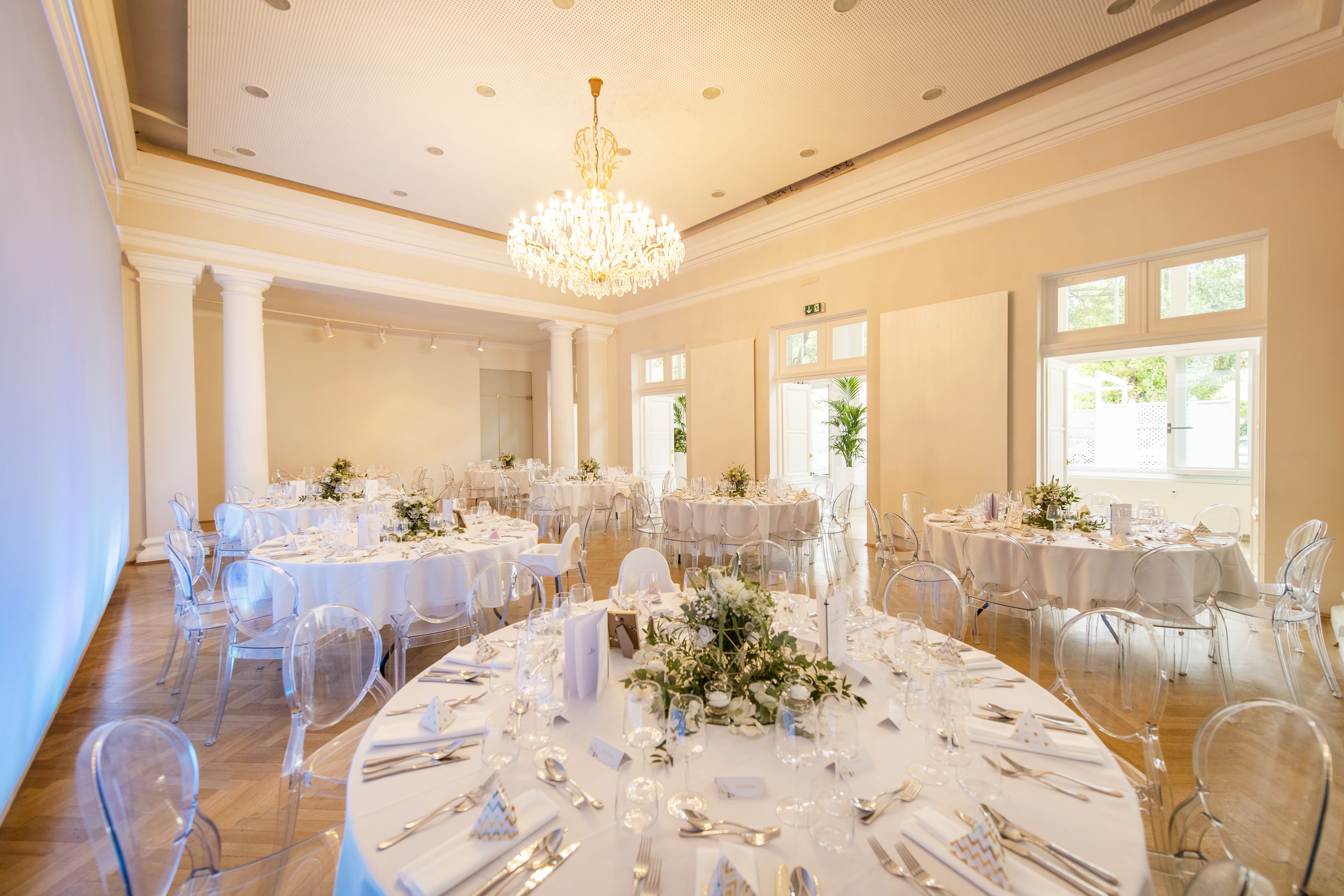 Der denkmalgeschützte, repräsentative Kursalon im Herzen Mödlings ist die erste Adresse für eine Hochzeitsfeier mit gehobenen Ansprüchen. Der historische Rahmen der Location und das geschmackvolle Interieur mit dem perfekten Mix an Designmöbeln und Stilelementen schafft ein exklusives Ambiente. Das Palais besticht mit einer großen Sonnenterrasse, einem großzügigen Wintergarten als Entrée, dem Kristallzimmer mit historischen Luster und dem gemütlichen Kaminzimmer.
