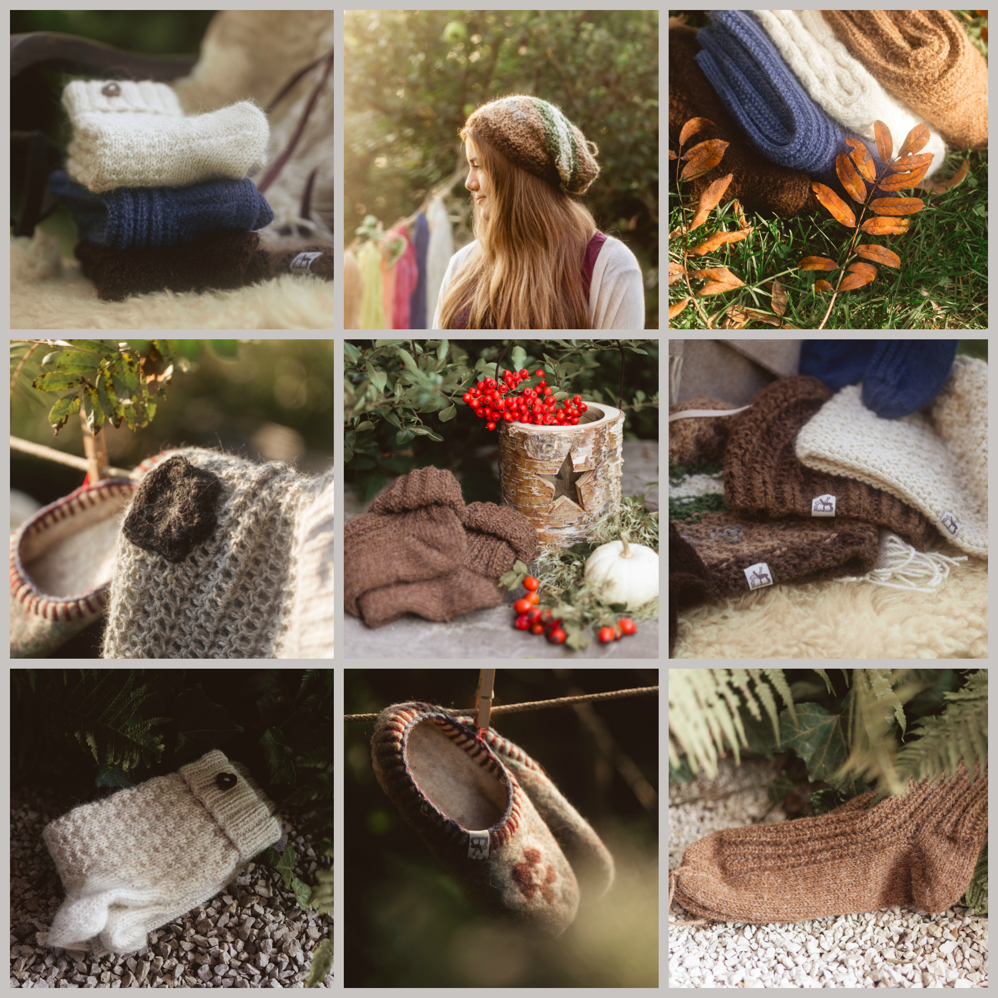 Bettwaren (Steppdecke und Kissen), Strickwolle, Hauben, Stirnband, Socken, Handschuhe, Fäustlinge, Hüttenschuhe, Schuheinlagen, Schals, Ponchos, Dreieckstücher.