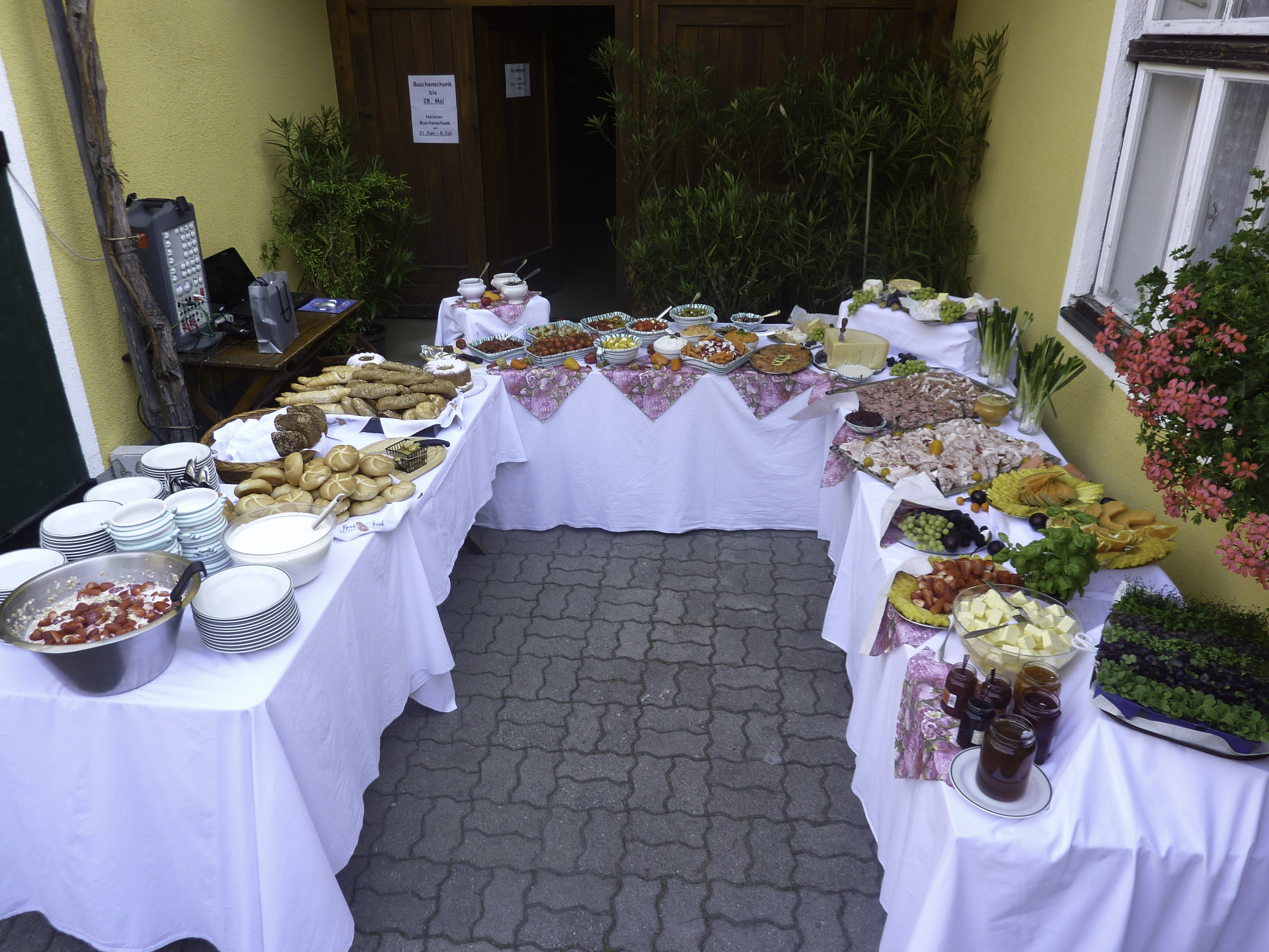 Während des Heurigenbetriebes bieten wir Ihnen ab 11 Uhr ganztägig warme Küche mit typisch österreichischen Schmankerln. Bedienen Sie sich an unserem reichhaltigen kalten Buffet mit variierenden Salatvariationen und Käsespezialitäten. Zum Abschluss verwöhnen Sie Ihren Gaumen mit hausgemachten Mehlspeisen.