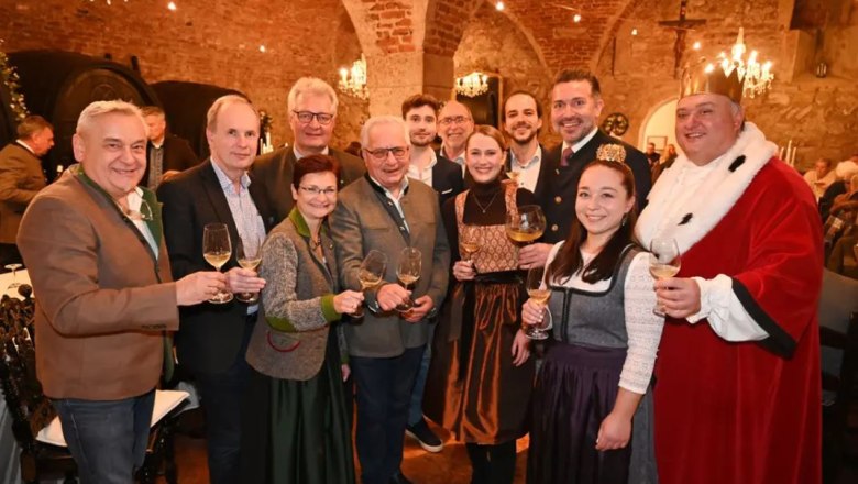 Zur traditionellen Weintaufe, bei der der Gumpoldskirchner Königswein 2024 gesegnet und für den Taufpate, Wienerwald-Geschäftsführer Michael Wollinger, im historischen Rahmen des Melkerhofs die Patronanz übernahm, luden der Weinbauverein, die Königsweinwinzer und die Hauerdamen ein.