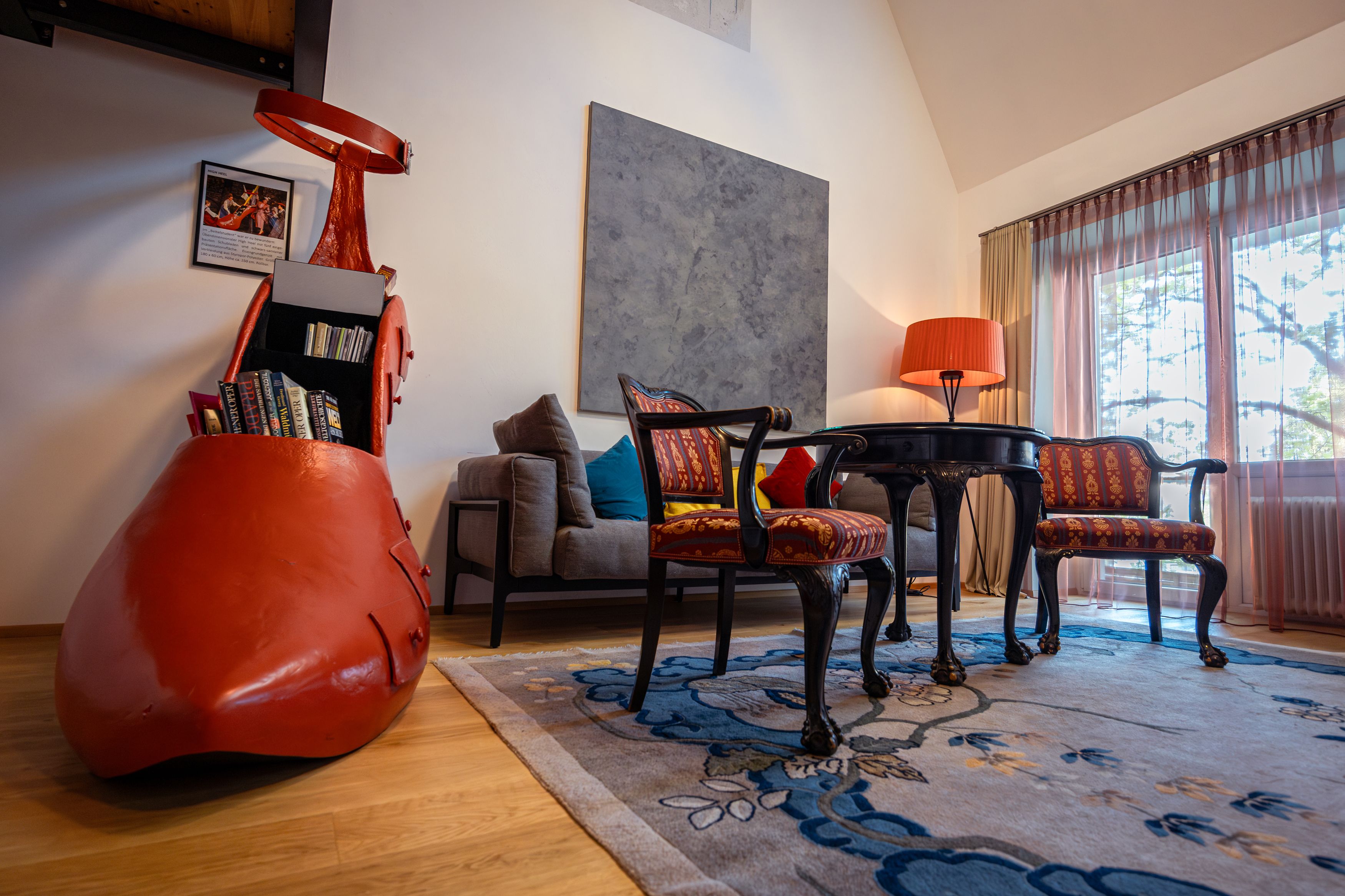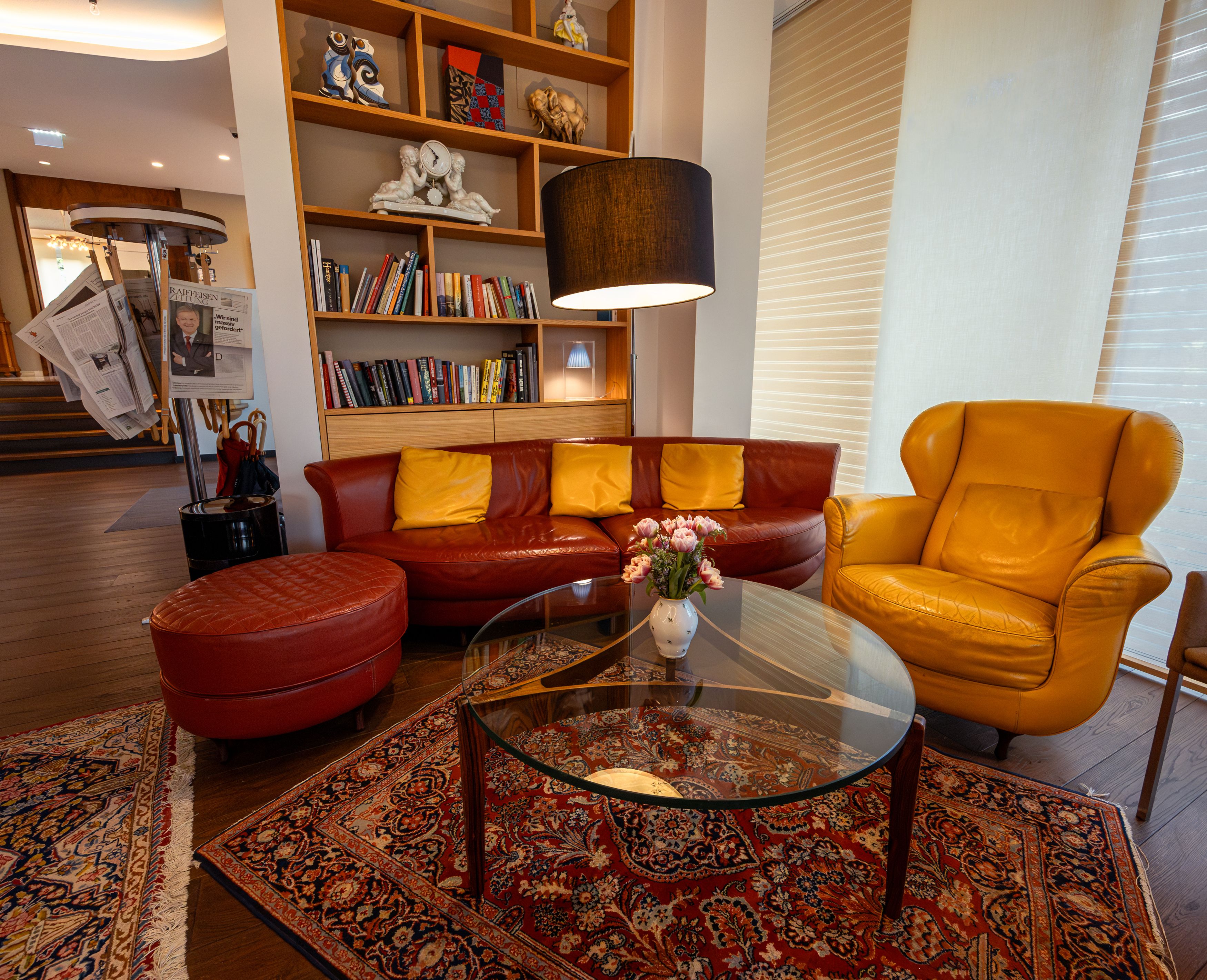 Von der Terrasse aus, mit Blick auf den Kurpark lassen sich die allerschönsten Sonnenuntergänge bewundern. Idealerweise mit einem Gläschen vom hauseigenen „krap Gin“ als Sundowner. Und vielleicht ist auch Mick Jagger genau hier gesessen, als er in den 70ern einmal im Hotel Gast war.