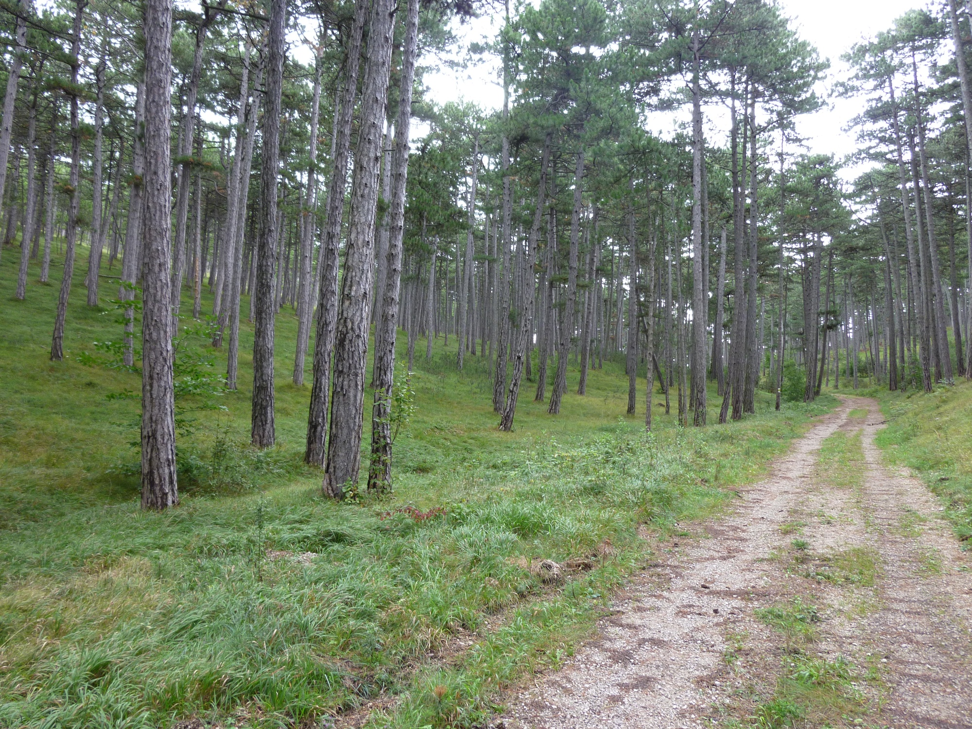 Diese Wanderung ist untypisch, denn man startet in Aigen auf Seehöhe 500 m, wandert hinunter nach Kleinfeld (350 m) um anschließend wieder hinauf nach Aigen. Dementsprechend hat man Aussichten auf Hohen Lindkogel, Hundsheimer Berge, Leithagebirge bis hin zum Schneeberg auch nur am Hochplateau von Aigen. Gegen den Uhrzeigersinn umrundet man den Größenberg östlich, steigt kurz zum Saurerkreuz (450 m) auf, wo der Buchen- und Laubmischwald abrupt in Schwarzföhrenwald übergeht. Absteigend wird rasch das Kleinfelder Becken erreicht, das abgeschieden inmitten von bewaldeten Hügeln liegt. Die kleine, idyllische Ortschaft Kleinfeld wird auf der Straße durchquert, bevor man auf einer langen Forststraße am Hang der Brunnleiten gleichmäßig bergauf zurück nach Aigen wandert. Einkehrmöglichkeit ggf. unterwegs beim Heurigen Kaiser in Kleinfeld, Aussteckzeiten erfragen.