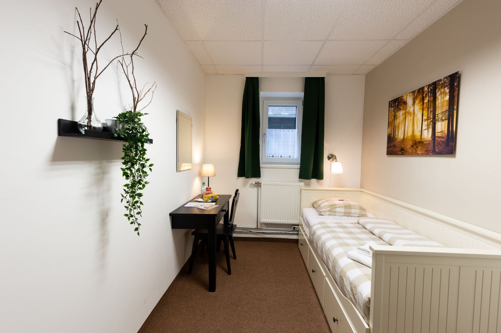 Die Pilger-Zimmer (12-15m²) hätten dann ein Gemeinschaftsbad sowie eine gemeinsame Küche mit Lounge zu einem günstigen Preis von EUR 40,-- pro Zimmer und Nacht für 1 Person bzw. EUR 60,-- bei 2 Personen.