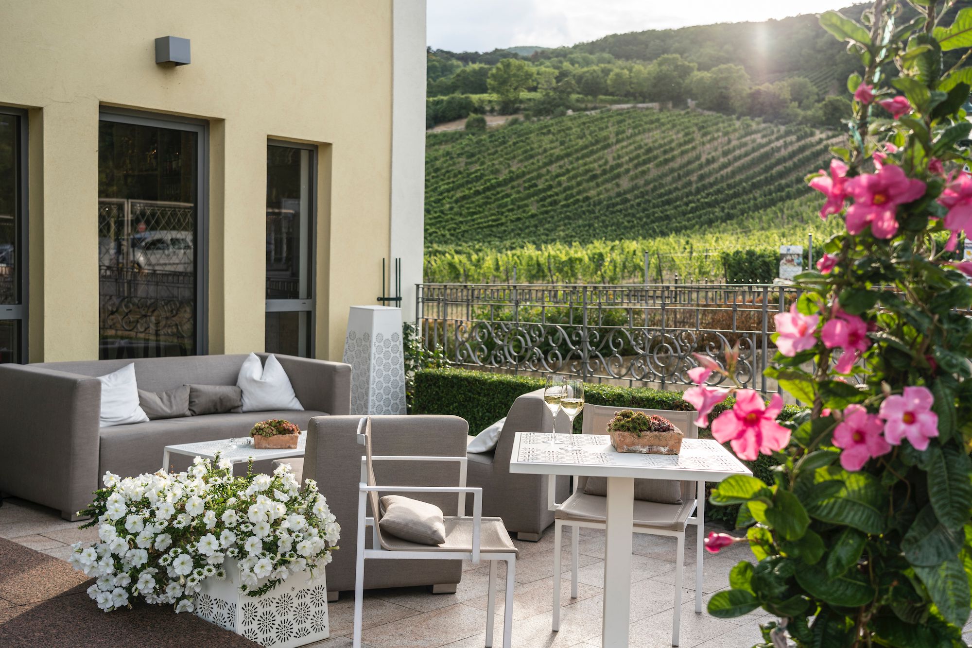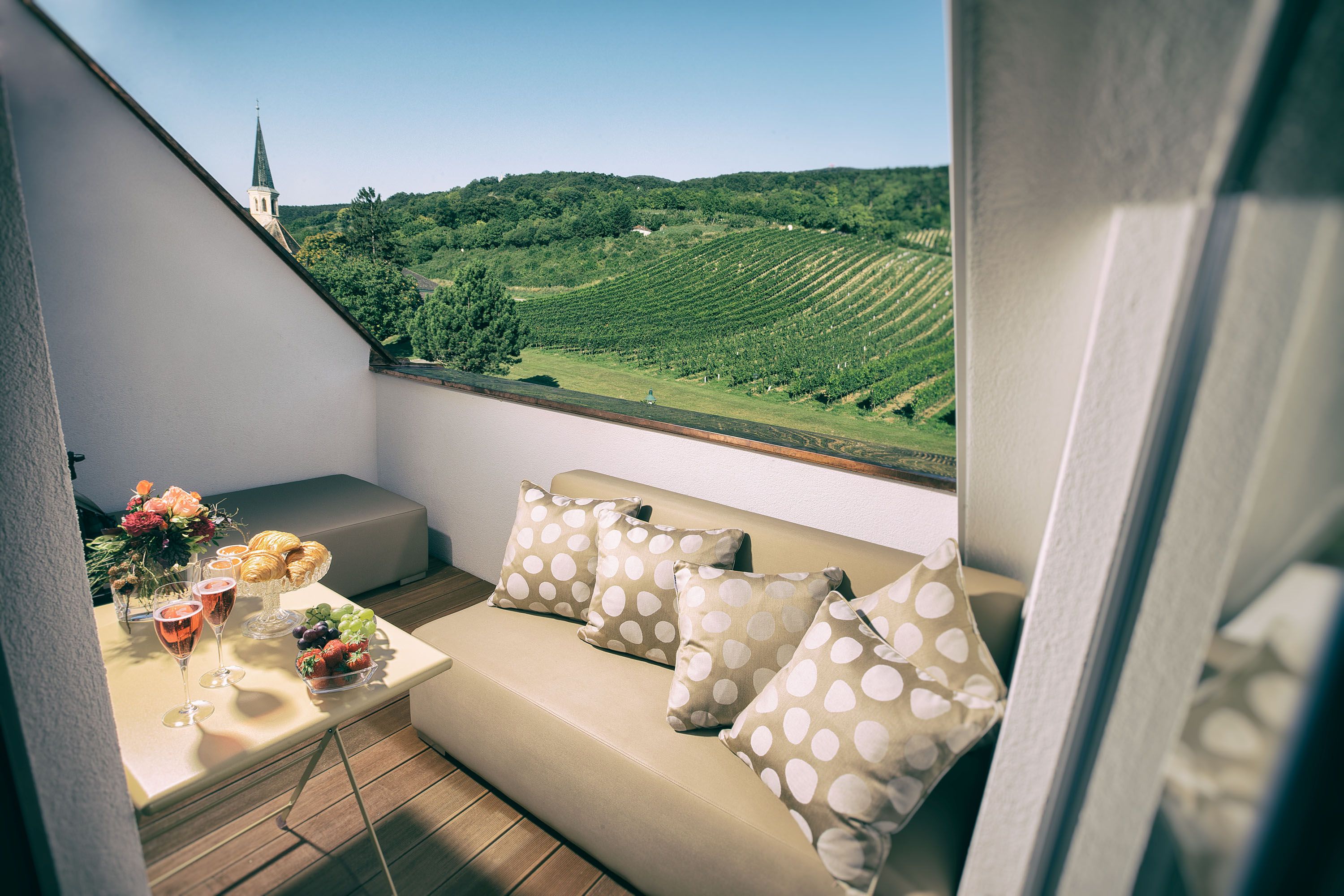 Nur wenige Autominuten von Wien entfernt liegt, in idyllischer Landschaft eingebettet, das familiär geführte Viersternhotel. Der gediegene Wohnkomfort und das zuvorkommende Service des langjährigen Mitarbeiterteams versprechen erholsame Urlausbstage im traditionsreichen Weinort.