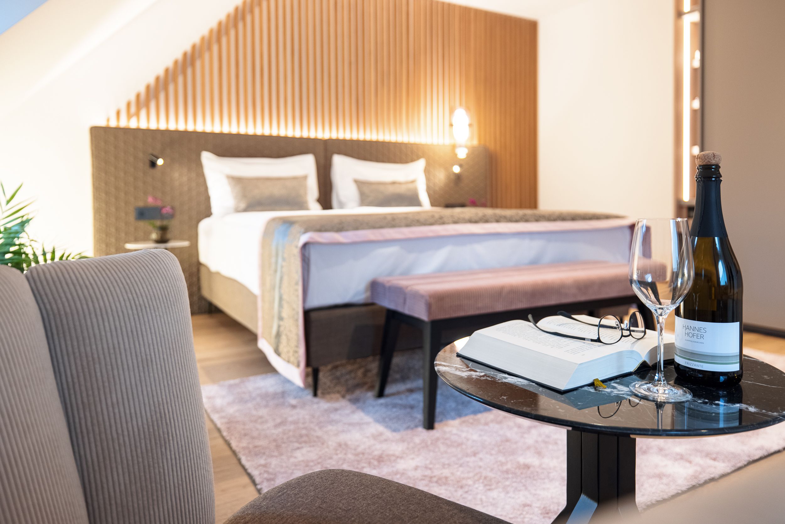 Ob zur Erholung vom Arbeitstag oder zum Weiterarbeiten - die neuen Wohlfühlzimmer lassen keine Wünsche offen: große Betten, moderne Bäder, ein Schreibtisch mit viel Ablagefläche bieten Ihnen jeden denkbaren Wohnkomfort. In den geräumigen Weinbergsuiten mit Blick auf die Weinberge und uneinsehbarer Terrasse können Sie sich nach Lust und Laune entfalten.