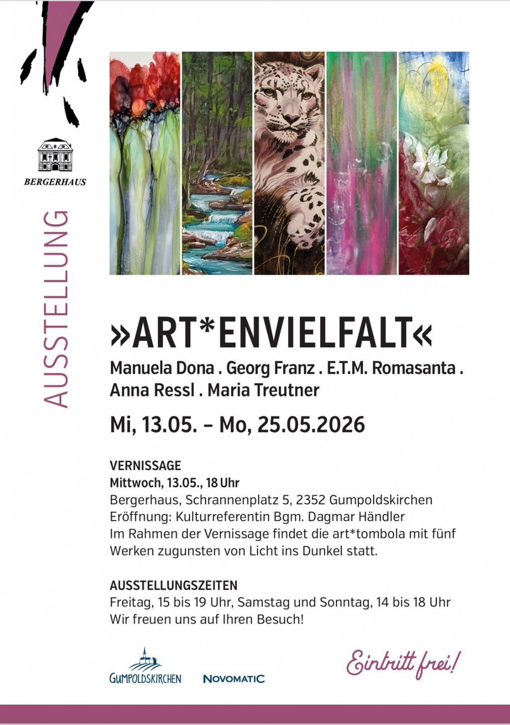 Gemeinschaftsausstellung - Manuela Dona, Georg Franz, E.T.M. Romasanta, Anna Ressl und Maria Treutner