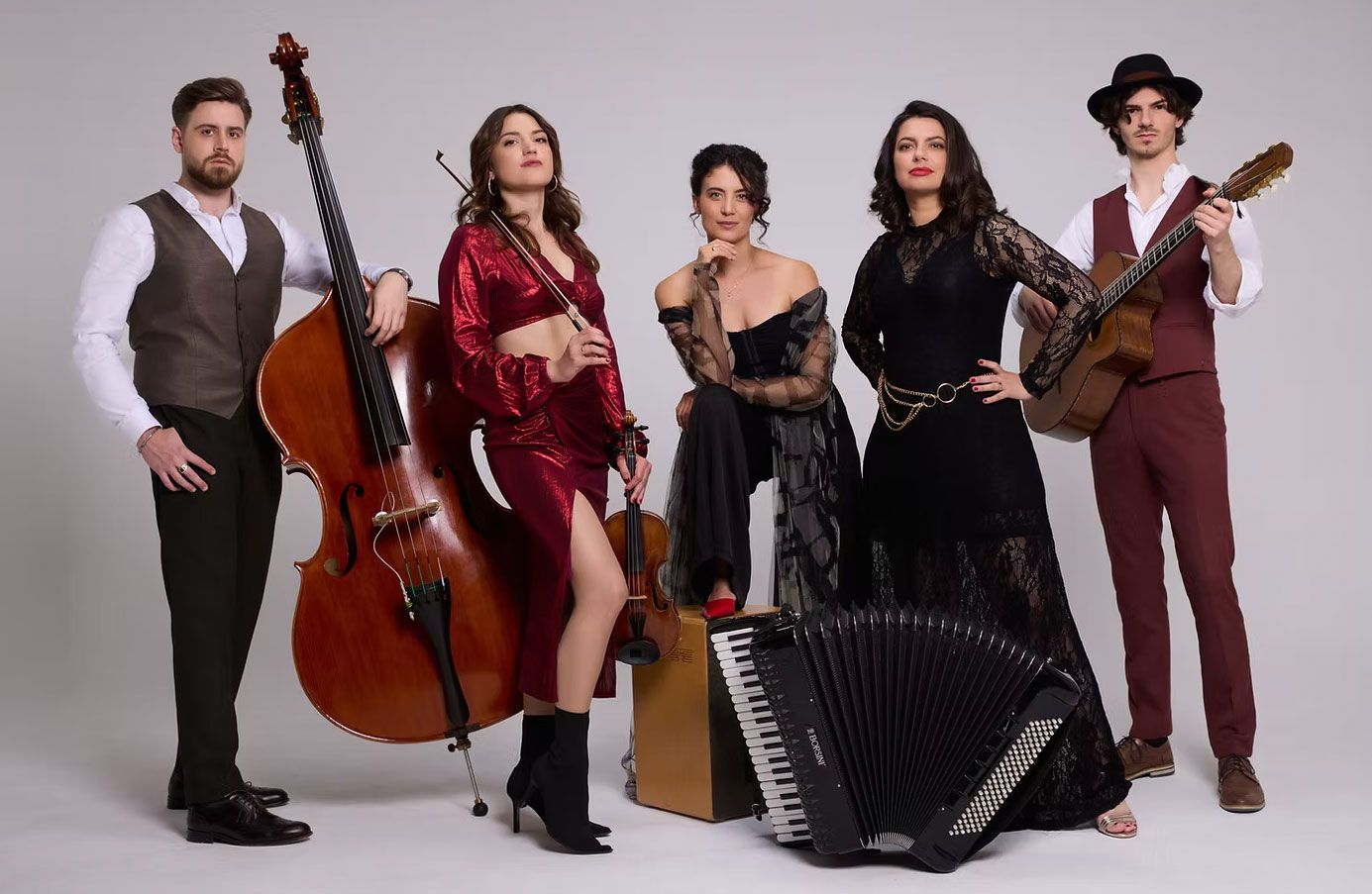 Baba Yaga ist wild, unberechenbar und manchmal sogar gefährlich. Und das ist auch gut so, sie fürchtet keine Grenzen, sondern überschreitet sie bewusst. Die aus der slawischen Mythologie stammende Baba Yaga diente seit jeher als Muse künstlerischer sowie musikalischer Inspiration. Sie brachte auch die Band Baba Yaga dazu, unter anderem osteuropäische Sounds aufzugreifen, musikalische Grenzen bewusst aufzubrechen und geschickt zu kombinieren. Sie klingt virtuos, feurig und verführt zum ekstatischen Tanz. Der Klang bleibt pur und authentisch: Violine, Kontrabass, Gitarre, Gesang und Percussion, denn was braucht es mehr? Das Repertoire reicht von wilden Balkan-Stücken und Klezmertunes über flotten Swing, Gypsy-Jazz und orientalischen Tänzen bis hin zu Eigenkompositionen.