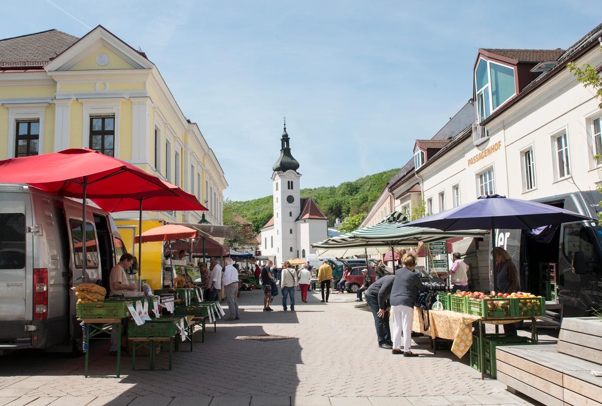 Bauern- und Wochenmarkt der Stadtgemeinde Purkersdorf werden am Hauptplatz gesunde und abwechslungsreiche