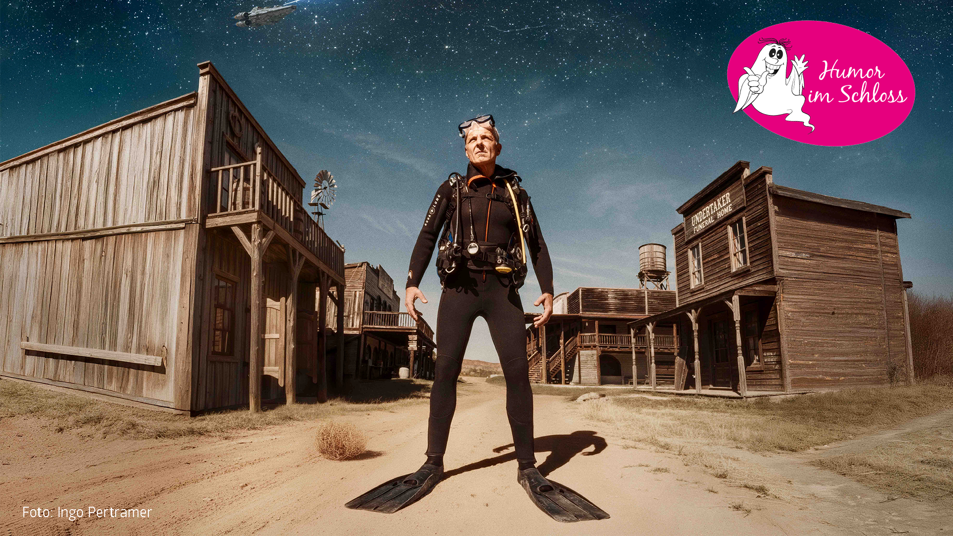 Genießen Sie den "falschen Film" unter freiem Himmel im barocken Ambiente von Schloss Hunyadi! Thomas Maurer sorgt für die unterhaltsame Betrachtung der Gegenwart, die BuchBar für Ihr leibliches Wohl!