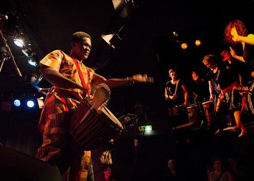 Raffinierte Arrangements traditioneller Djembe-Rhythmen, abwechslungsreicher Einsatz afrikanischer Percussion-Instrumente, mehrstimmiger Gesang und Tanzchoreografien charakterisieren das mitreißende und dynamische Programm dieses Ensembles. Auf Djemben, Basstrommeln, Schlitztrommeln, Talking Drums und Kleinpercussion grooven die Musiker:innen durch die komplexe Musik der Malinke, schaffen überraschende Verknüpfungen, surfen gemütlich und leise dahin, um gleich darauf ein musikalisches Feuerwerk zu entzünden - diesmal besonders explosiv und heiß: die wunderbaren Rhythmen aus dem Hamana und der Meistertrommler Billy Konate aus Guinea werden euch unter Garantie von den Stühlen reißen und den Saal zum Brodeln bringen.